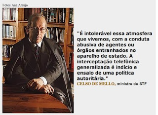 “É a primeira vez que, sob um regime democrático, os integrantes do Supremo Tribunal Federal se insurgem contra suspeitas de práticas típicas de regimes autoritários: as escutas telefônicas clandestinas. Sim, beira o inacreditável, mas os integrantes da mais alta corte judiciária do país suspeitam que seus telefones sejam monitorados ilegalmente”.